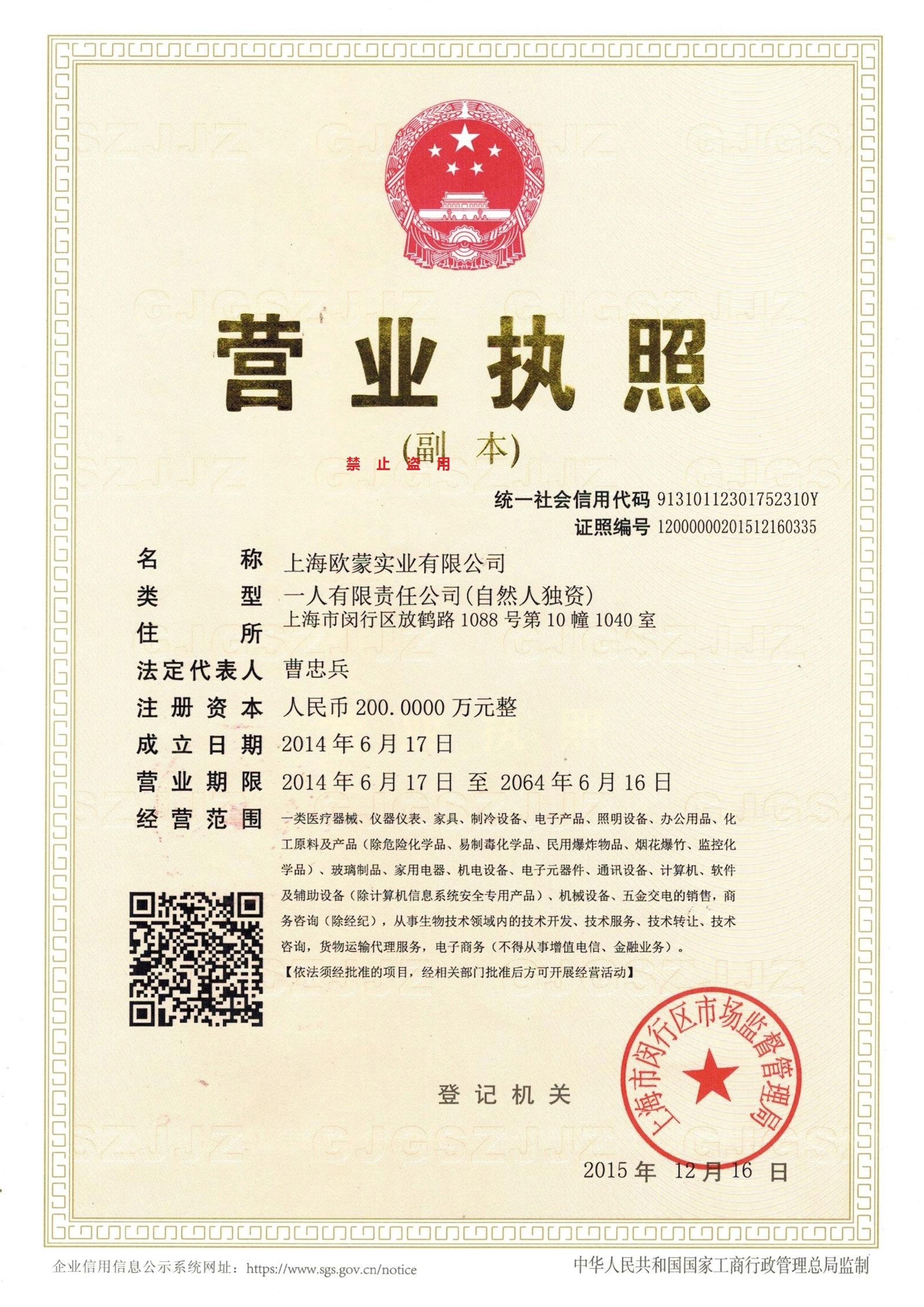 上海欧蒙实业有限公司成立于2014年,坐落于中国“申城魔都” “东方巴黎”----上海。是一家集产品研发、设计、制造、营销于一体的综合企业。为客户提供整体解决方案。